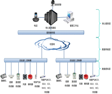 本系統是基于物聯網技術,引入模塊化設計的思路構建的實驗室綜合監控系統,主要監測對象包括氣體監測、環境監控、動力系統監控、安防監控等。