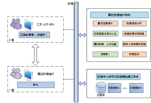 學生體質健康監控系統是根據《學生體質健康標準》要求建立的健康體質監控系統,采用多級化管理系統實現學生身體數據多級上報,在上報的同時生成詳細的學生體質素質報告,采用短信或微信方式發給家長或相關人員。系統針對學生從入學到畢業的身體成長數據進行全程監管和控制,建立學生體質檔案管理制度,從而建立特有的學生體質健康管理體系,將學生體質的各項指標數據進行匯總、集中管理、分類存儲,對數據進行跟蹤記錄、分析評測,通過體質健康體系數據模型分析生成體檢結果評價報告單,各種信息數據通過各個學校的基礎維護進行匯總管理,形成學生體質健康數據庫,在此基礎上對學生身體健康狀況進行統計分析、對比研究以及科學的評價,并提出相應的決策及建議。