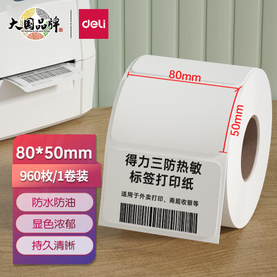 4063 得力(deli)80*50mm三防熱敏標(biāo)簽打印紙 電子面單標(biāo)簽不干膠打印紙電子稱條碼紙960張*1卷 三防升級款12007 QL004063 ¥29.9 加入詢價