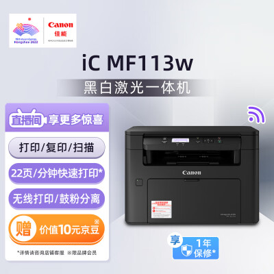4419 佳能(Canon)ic MF113w A4幅面無線黑白激光多功能一體機(jī)(打印/復(fù)印/掃描/鼓粉分離 家用/商用) QL004419 ¥1119 加入詢價