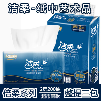 6637 潔柔200抽紙2層抽取式面巾紙辦公實惠裝3包裝 一提3包 QL006637 ¥14.4 加入詢價