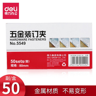 3355 得力5549鐵質裝訂夾 打孔5549金屬色80mm(50副/盒) QL003355 ¥8.9 加入詢價