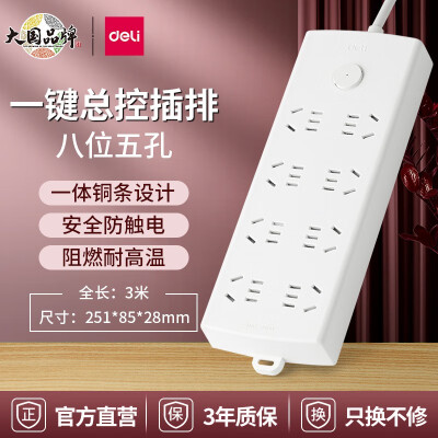 3863 得力(deli)插座多孔插排長(zhǎng)線多用功能插板 8插位總控LX126-3米 QL003863 個(gè) ¥40.9 加入詢價(jià)