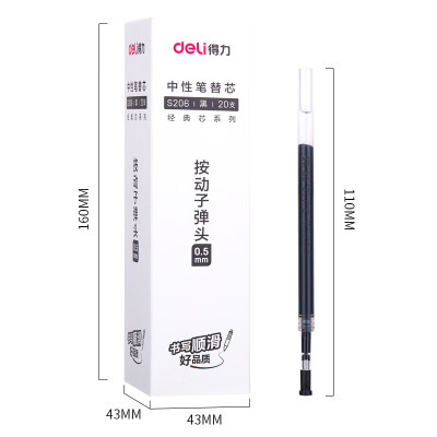 3043 得力(deli)0.5mm黑色中性筆筆芯 子彈頭水筆簽字筆替芯 20支/盒【6916替芯/20支黑色】 QL003043 ¥12.5 加入詢價