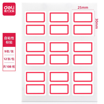 3017 得力(deli)108枚25×30mm紅框不干膠標(biāo)簽貼紙自粘性標(biāo)貼紙姓名貼 9枚/張 7191 QL003017 ¥1.6 加入詢價(jià)