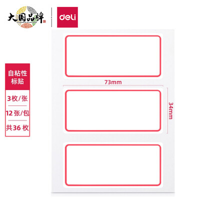 3014 得力(deli) 36枚34*73mm紅框不干膠標(biāo)簽貼紙自粘性標(biāo)貼姓名貼 7186 QL003014 ¥1.9 加入詢價(jià)