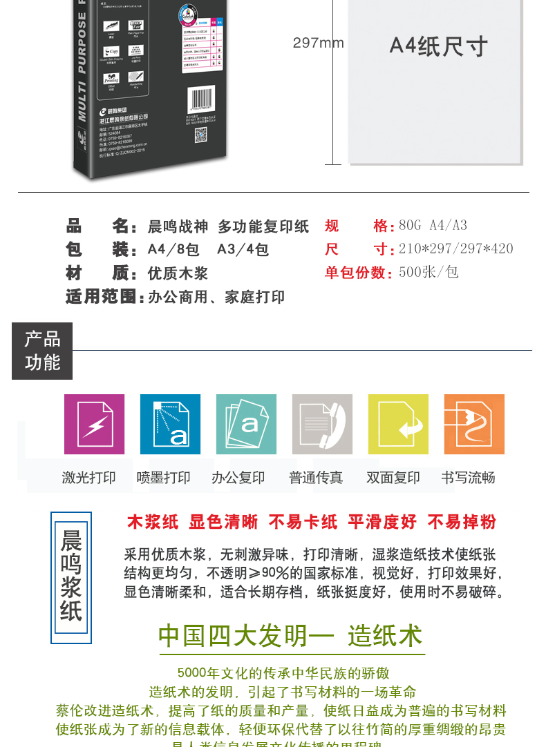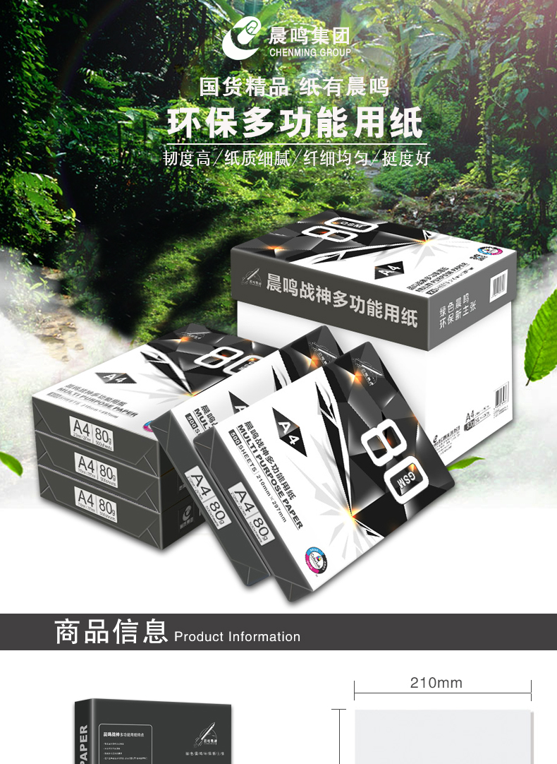 產(chǎn)品名稱 戰(zhàn)神復印紙80G A4 500S 5包/箱 貨號 ql000121
