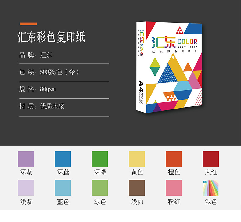 首頁 > 辦公用紙 > 彩色復印紙 > 彩色復印紙類 > 匯東色紙 80G A4 100S 橙色 25包/箱