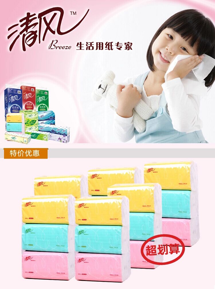 清風(fēng)BR38AC雙層糖果色塑包面紙-200抽