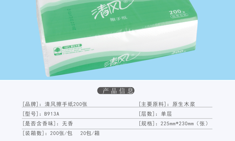 清風(fēng)B913A單層三折擦手紙-200張