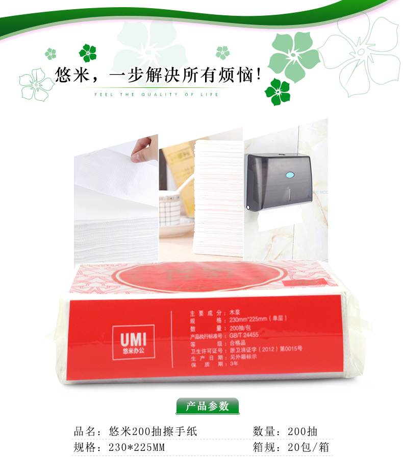 悠米C06001W單層擦手紙 200抽(20包/箱)