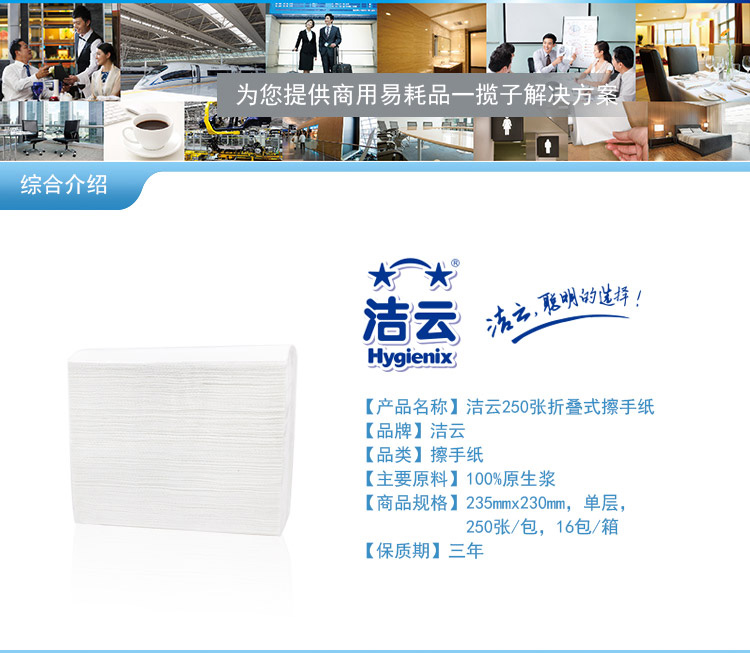 商用-潔云156304單層擦手紙-250張