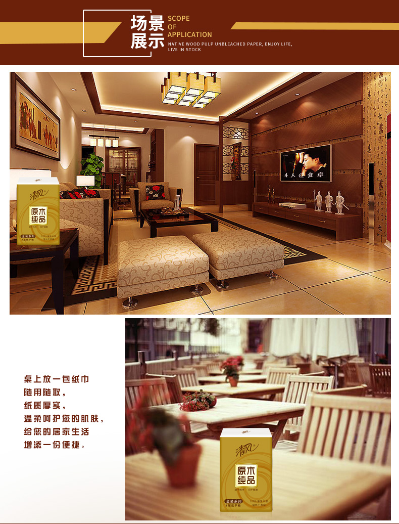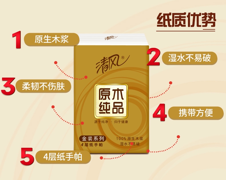 清風(fēng)B64GJ1四層金裝系列手帕紙-8張