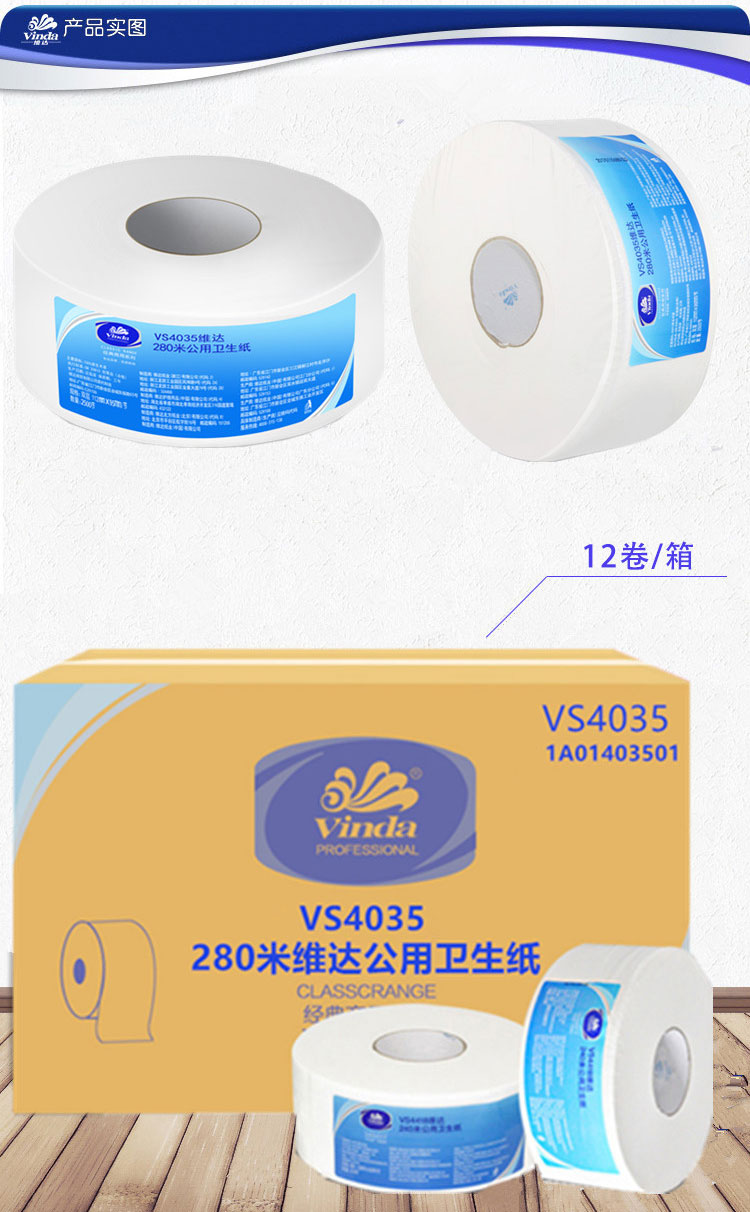 產(chǎn)品名稱 維達(dá)VS4035雙層大卷紙-280米 95*112mm,2層 貨號(hào) QL001283