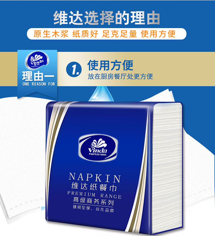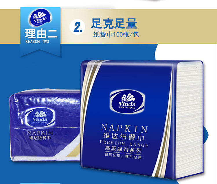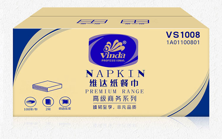 產(chǎn)品名稱 維達VS1008雙層餐巾紙-100張 230*230mm,2層 貨號 QL001302