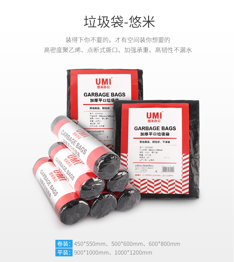 產(chǎn)品名稱 悠米(UMI)C01113D10增厚平口垃圾袋(全新料)60*80(15只/卷) 貨號(hào) QL001583