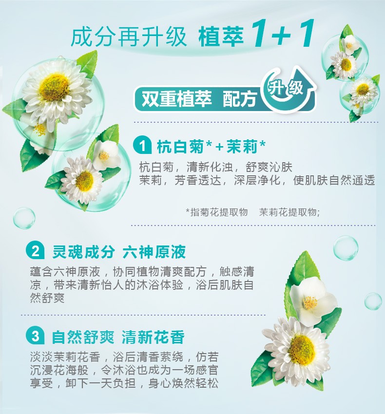 六神清新沁爽沐浴露(杭白菊+茉莉)750ml*4*2