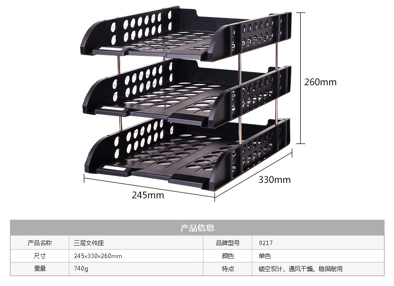 產(chǎn)品名稱 得力(deli) 9217(灰白色)三層文件座 貨號(hào) QL002303