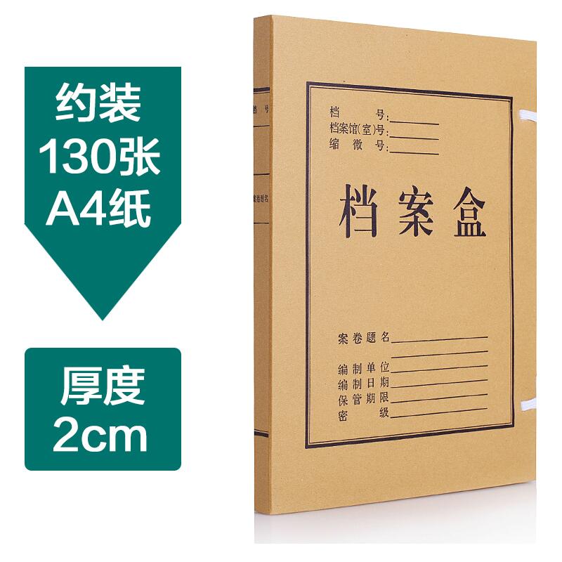 牛皮紙檔案盒A4純漿資料盒2cm/50個(gè)/包