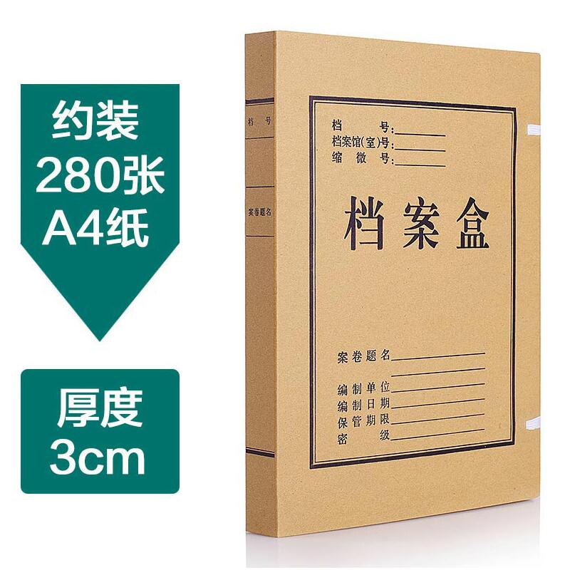 產(chǎn)品名稱 牛皮紙檔案盒A4純漿資料盒3cm/50個/包 貨號 QL002344