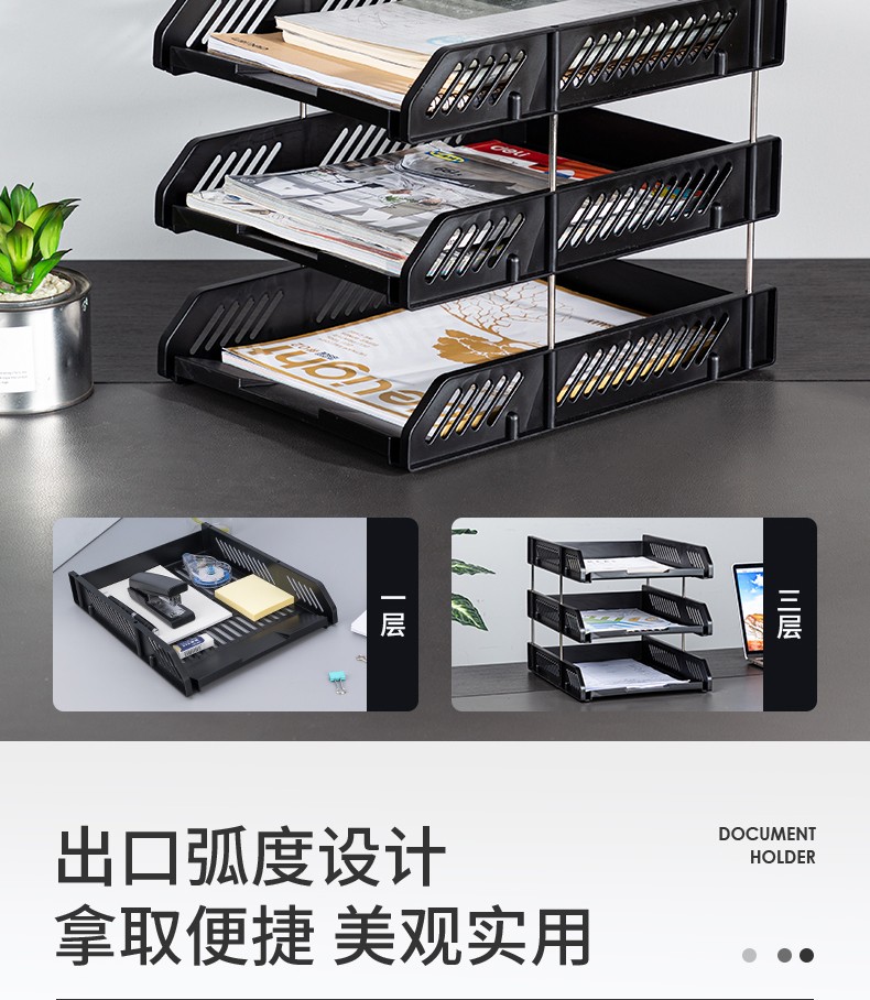 首頁 > 辦公文具 > 桌面存儲 > 文件盤 > 得力(deli) 三層鏤空收納文件座 自由拆卸組裝三層文件盤/文件框/文件架 牢固耐用 9181 金屬黑