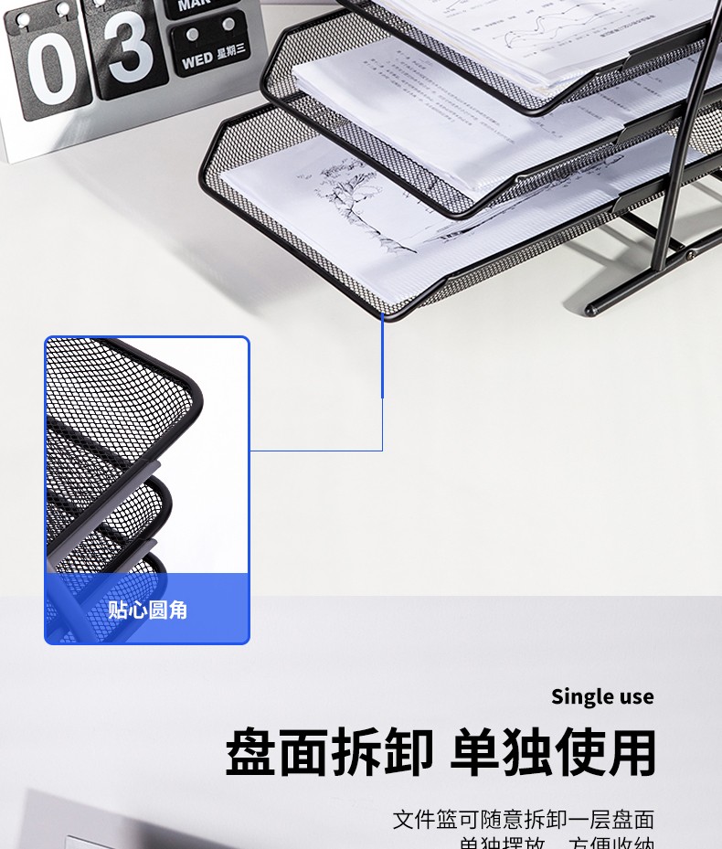 得力(deli) 三層鏤空收納文件座 自由拆卸組裝三層文件盤/文件框/文件架 牢固耐用 NS021S 綠色