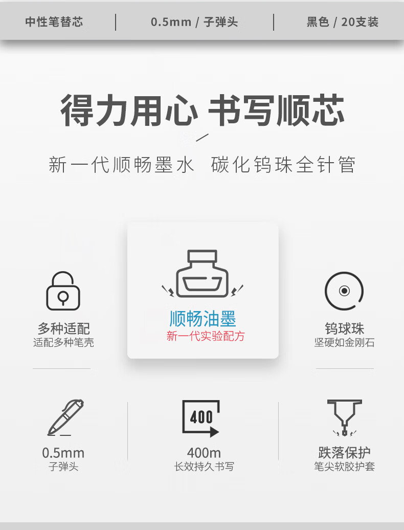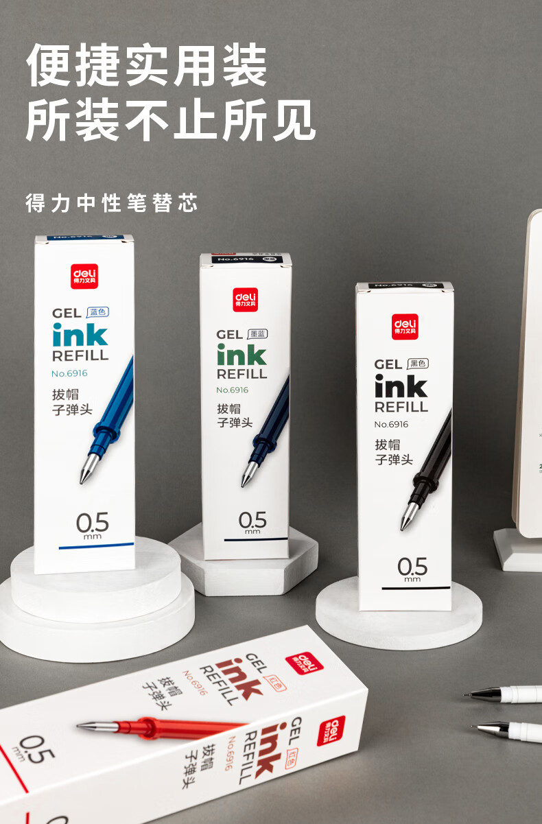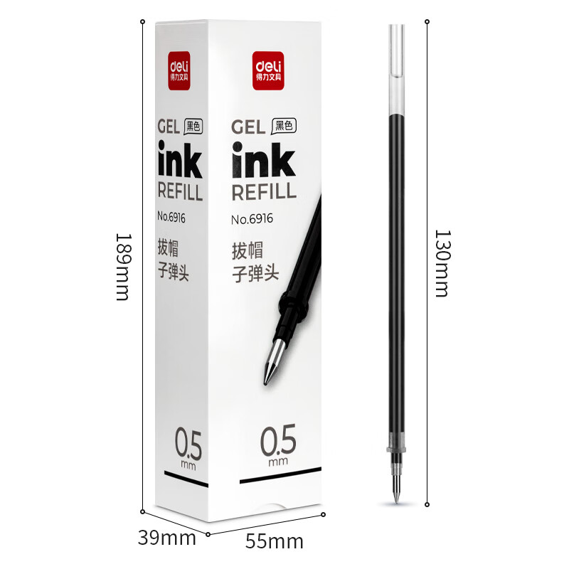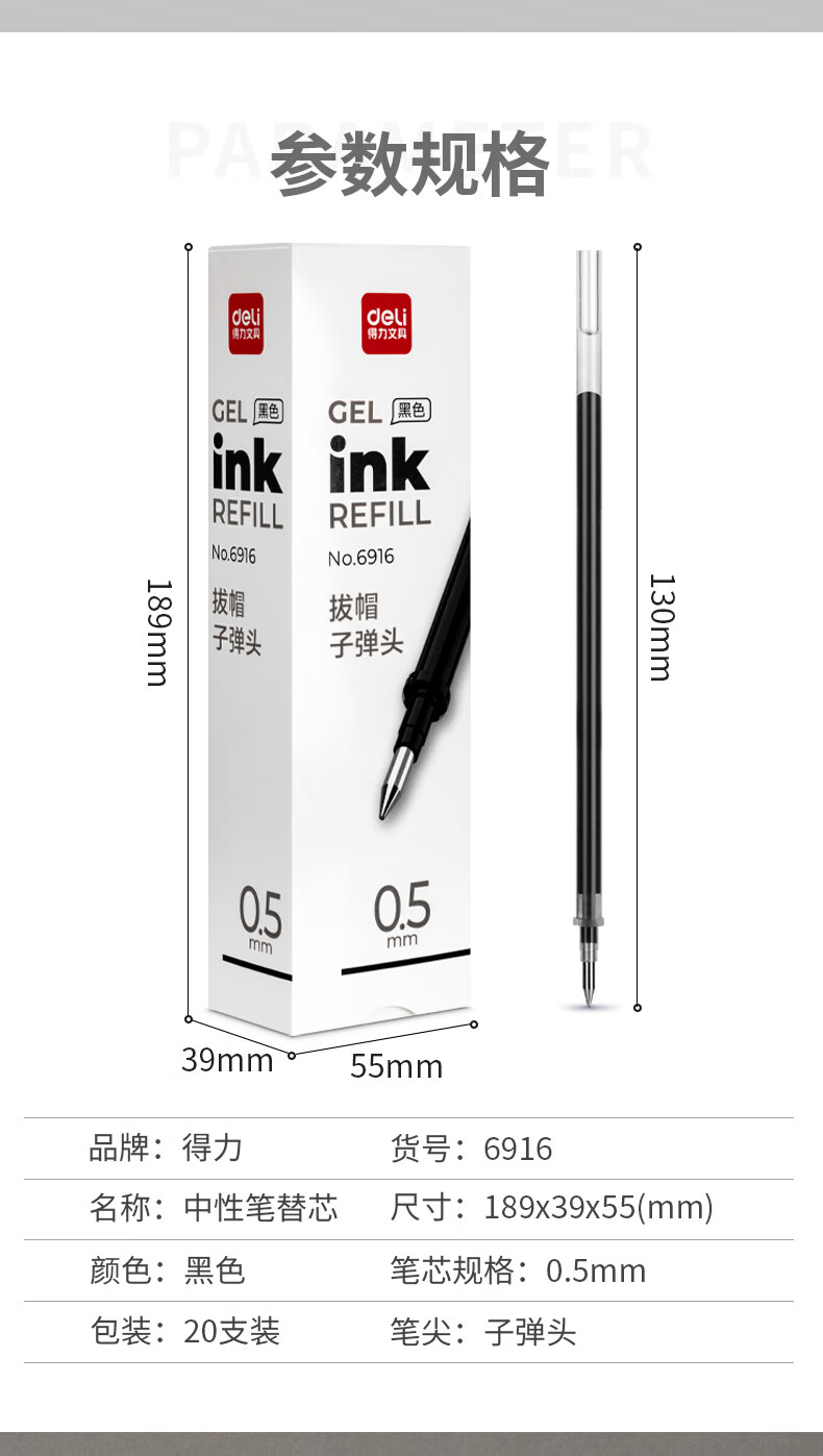 得力(deli)0.5mm黑色中性筆筆芯 子彈頭水筆簽字筆替芯 20支/盒【6916替芯/20支黑色】