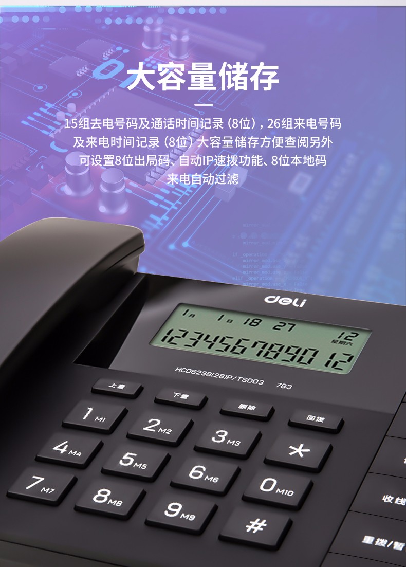 得力(deli) 13567電話機商務辦公橫式電話機座機免電池時尚造型 白色
