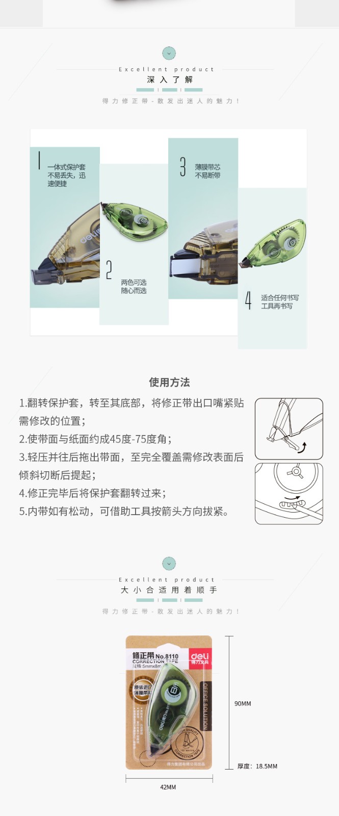 產(chǎn)品名稱 得力(deli)修正帶 顏色隨機單個裝8110 貨號 QL003230