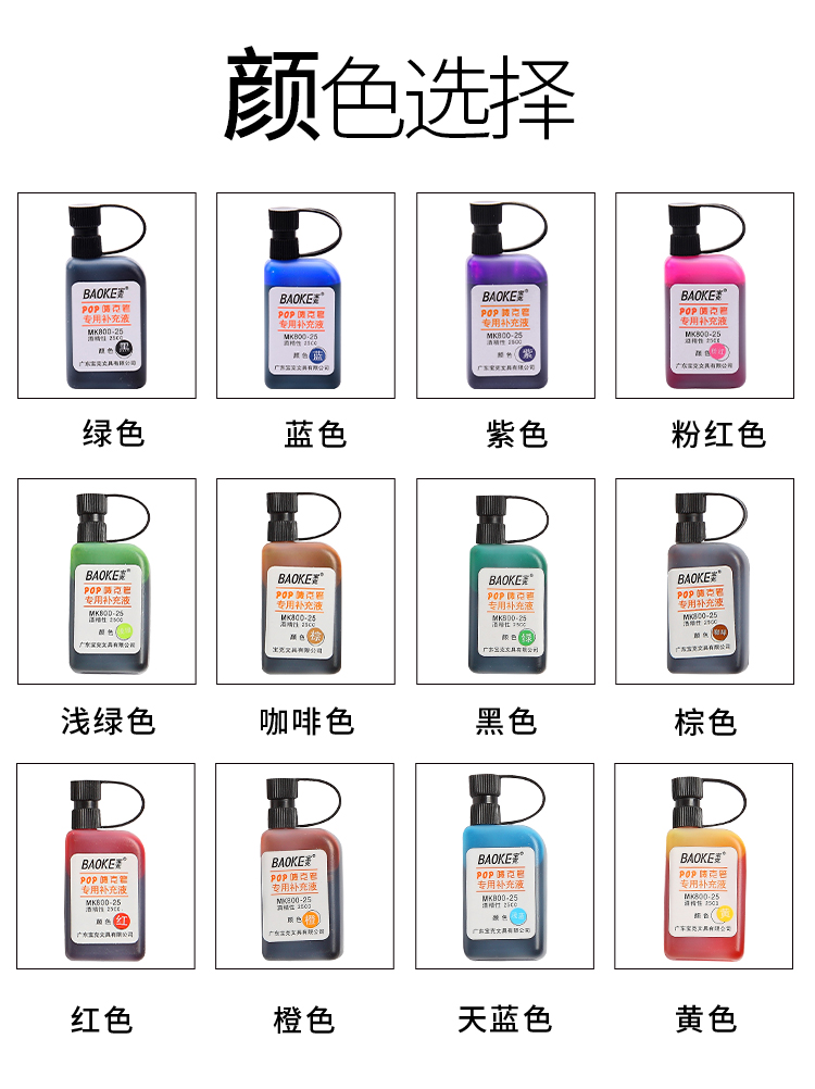 寶克(BAOKE)麥克筆專用補充液MK800-25海報筆墨水POP筆 淺綠色