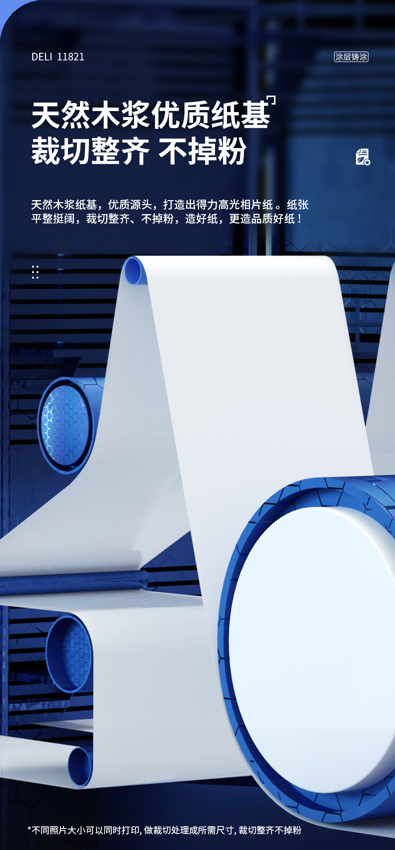 得力(deli)6英寸 200g高光面相片打印紙 100張/包