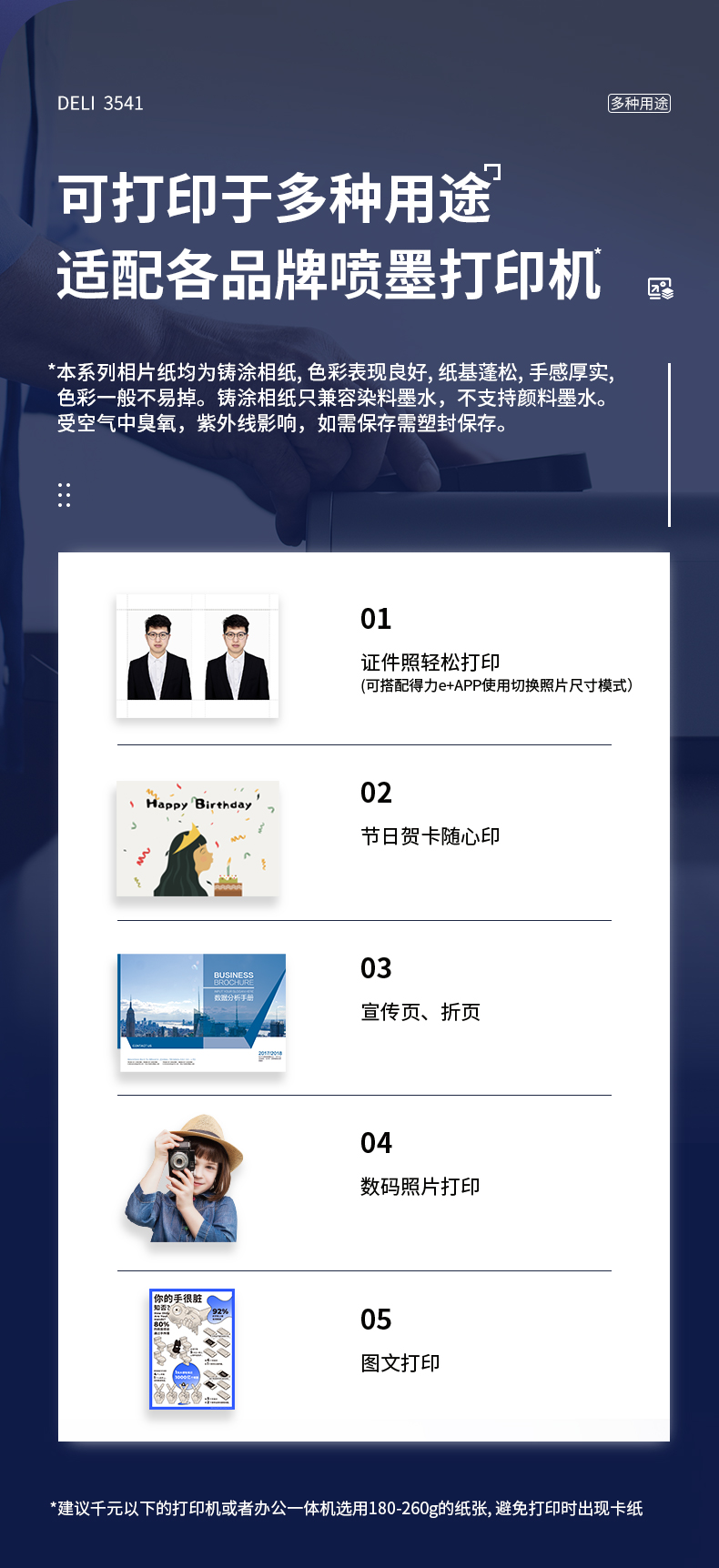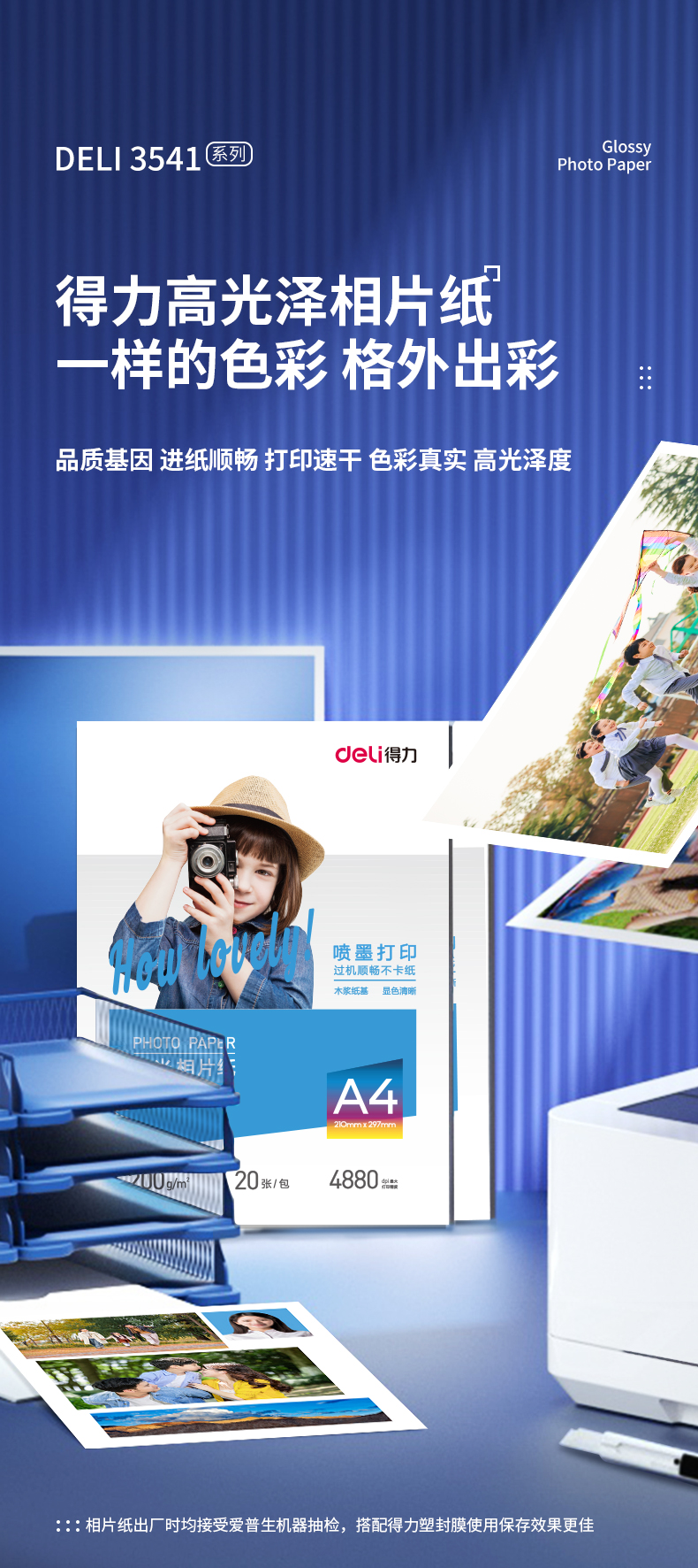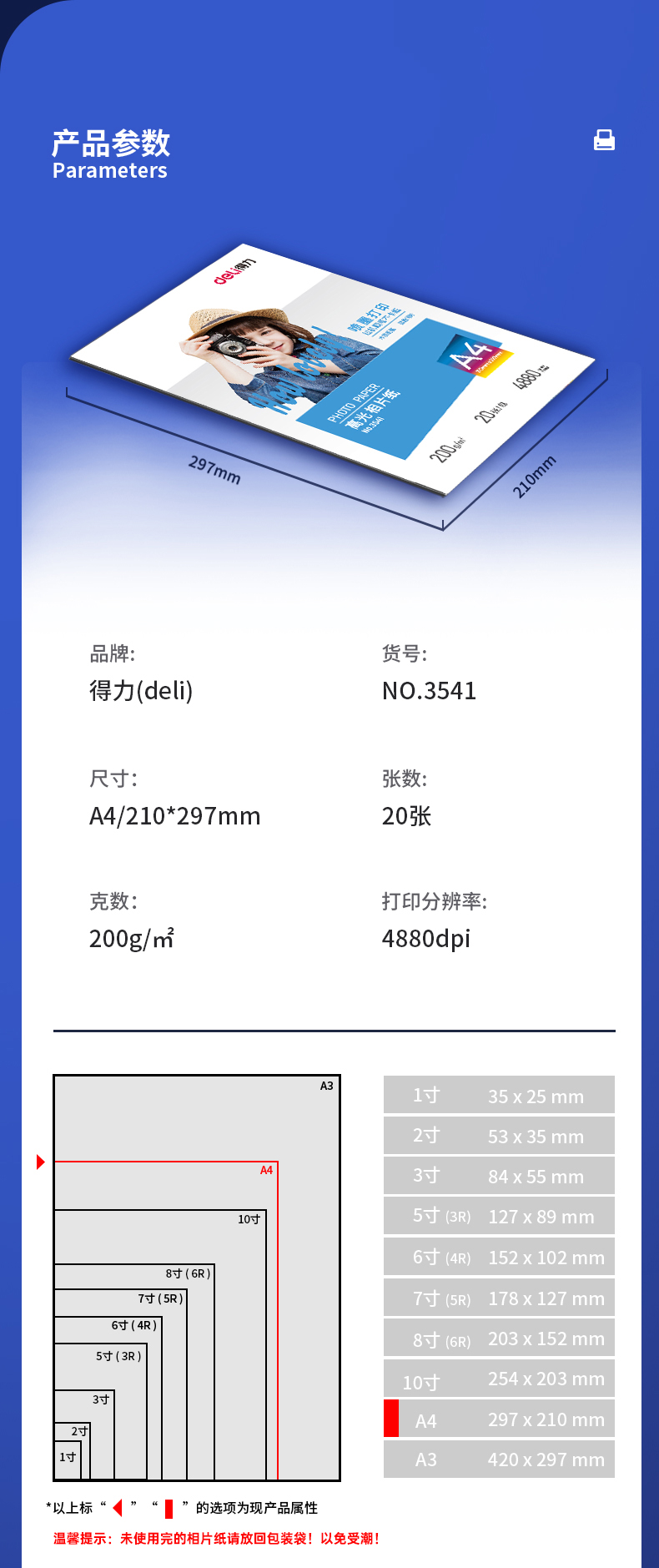 得力(deli)A4 200g高光面照片紙相片紙 相紙 20張/包 3541