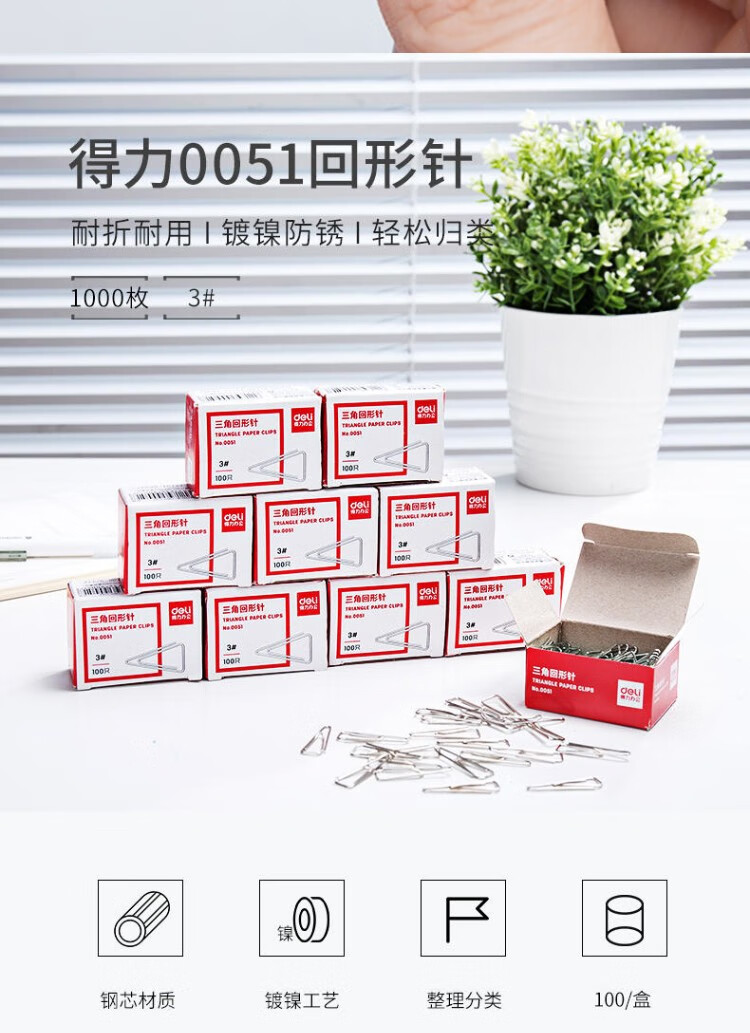 得力(deli)防銹回形針鍍鎳50mm 8#(100枚/盒)0050