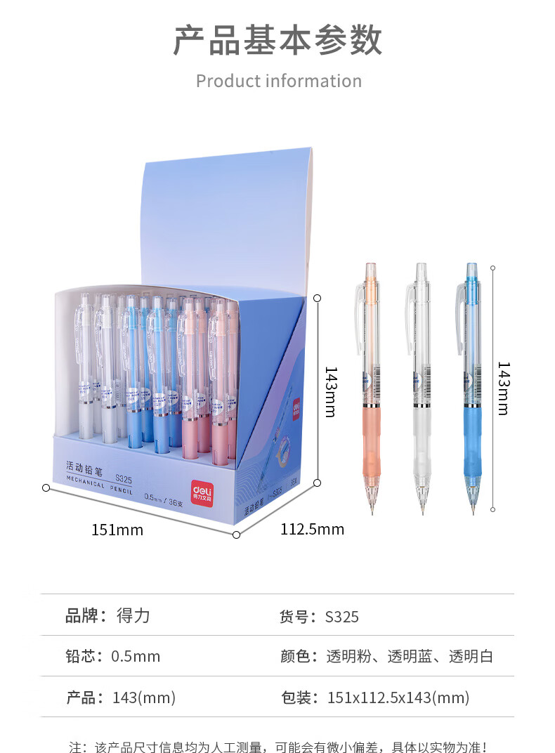得力(deli)自動(dòng)鉛筆0.5mm不斷芯簡約可愛活動(dòng)鉛筆s325