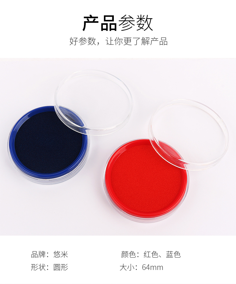 產(chǎn)品名稱 悠米 圓形透明盒蓋快干印臺B08101R 紅1盒裝 貨號 QL003478