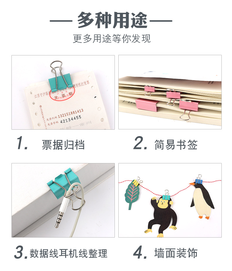 悠米 彩色長尾夾B09006X(15mm)60個/筒