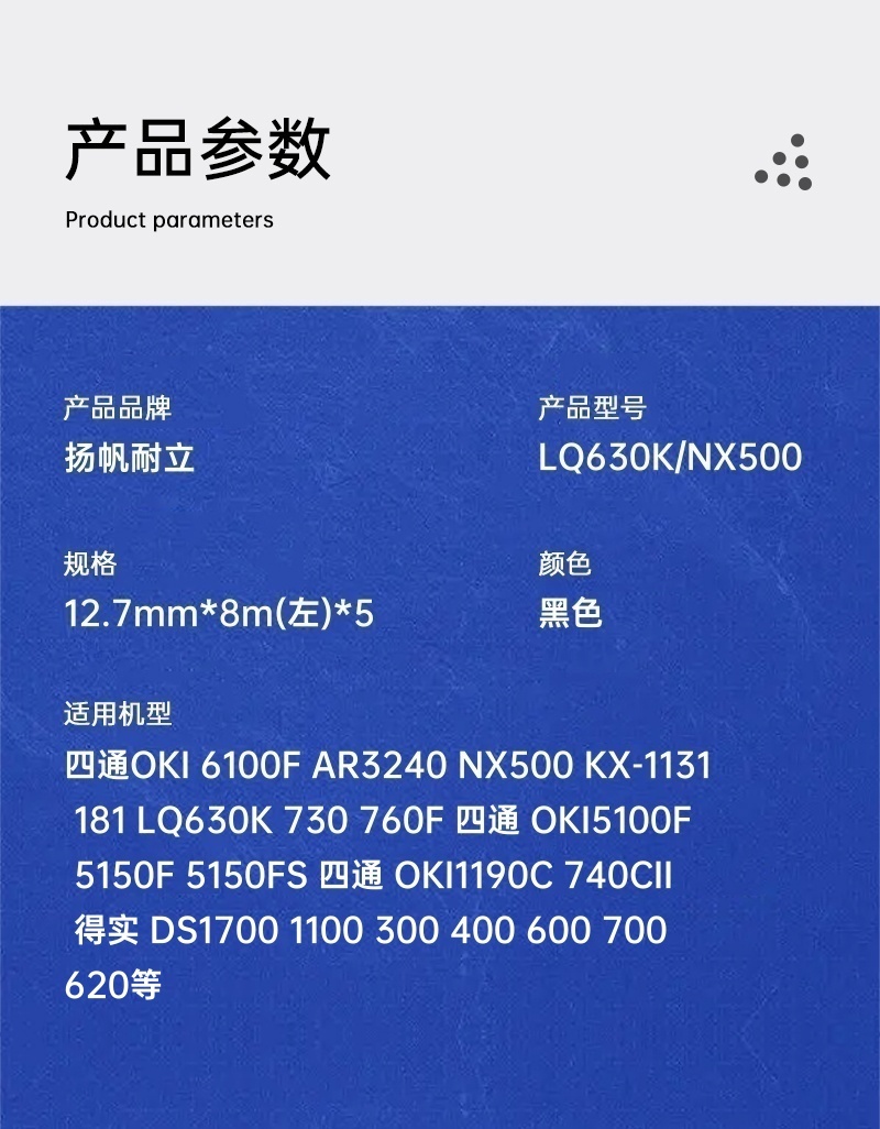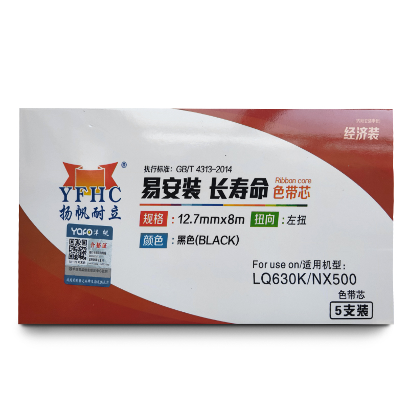 揚(yáng)帆耐立 LQ630K/NX500經(jīng)濟(jì)裝 色帶芯 5支裝/盒 黑色 12.7mm*8m(左)*5(適用四通OKI 6100F AR3240 NX500 KX-1131 181 LQ630K 730 760F)