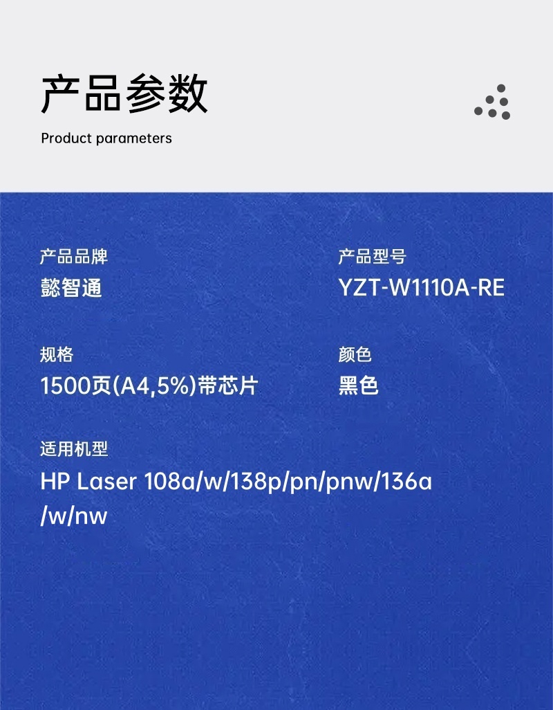 懿智通YZT W1110A(110A) 黑鼓(帶芯片) 單支裝(適用HP Laser 108a/w/138p/pn/pnw/136a/w/nw)