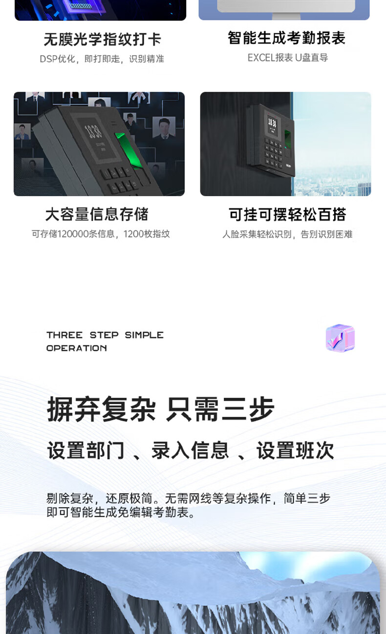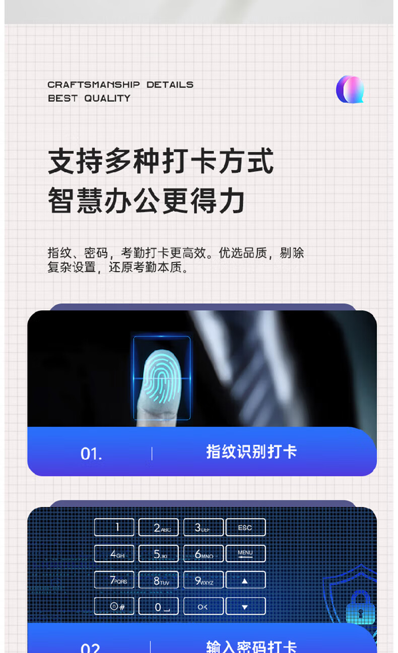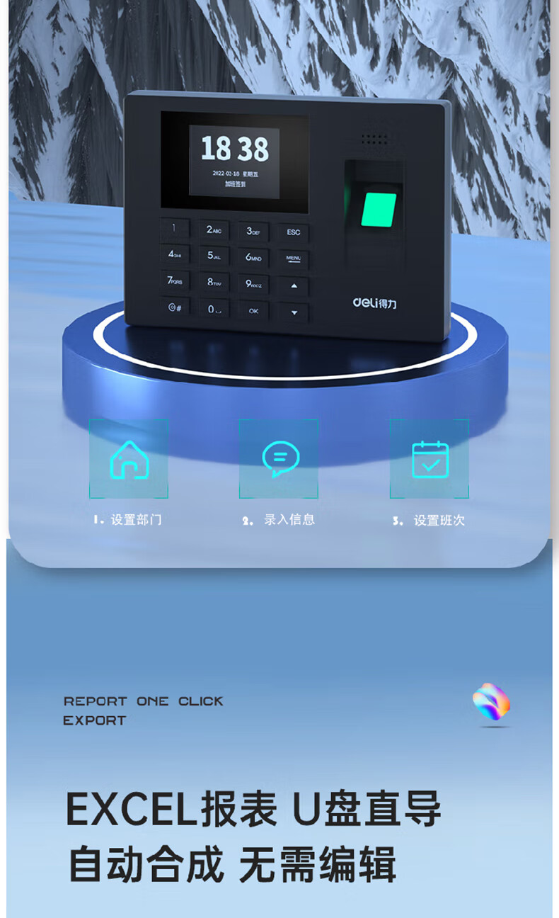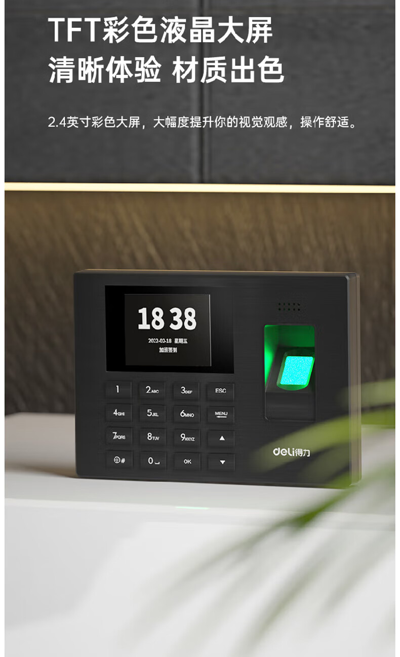 得力(deli)指紋打卡考勤機 免軟件安裝 自動生成報表 指紋打卡機3960S