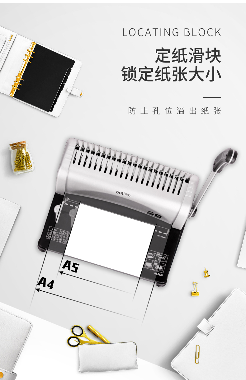 得力(deli)21孔文件打孔機 梳式財務(wù)裝訂機 3828-10孔夾條 12.5mm