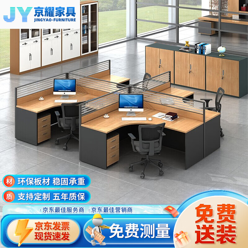 京耀職員辦公桌屏風(fēng)員工桌電腦桌工作位4人位含椅子