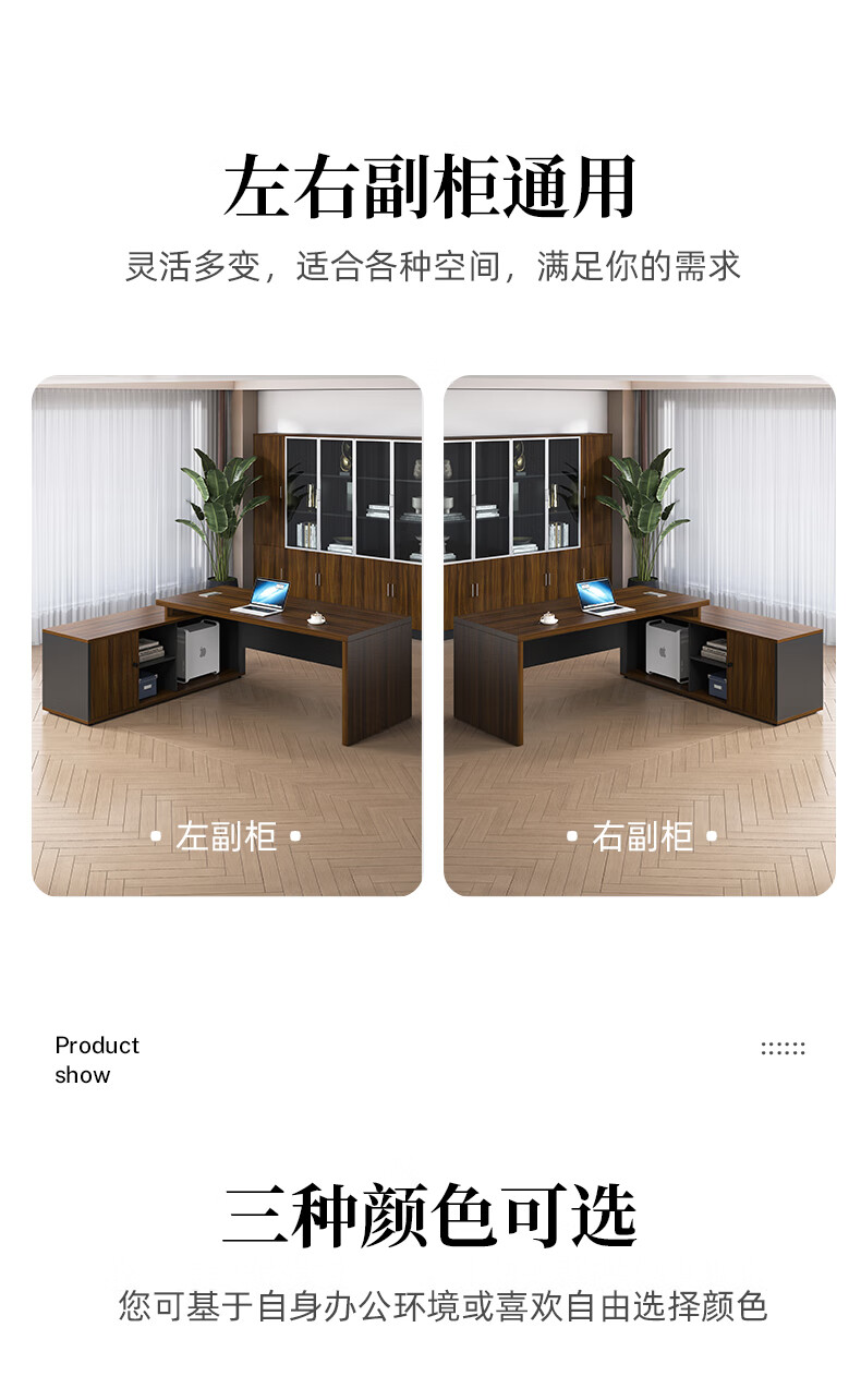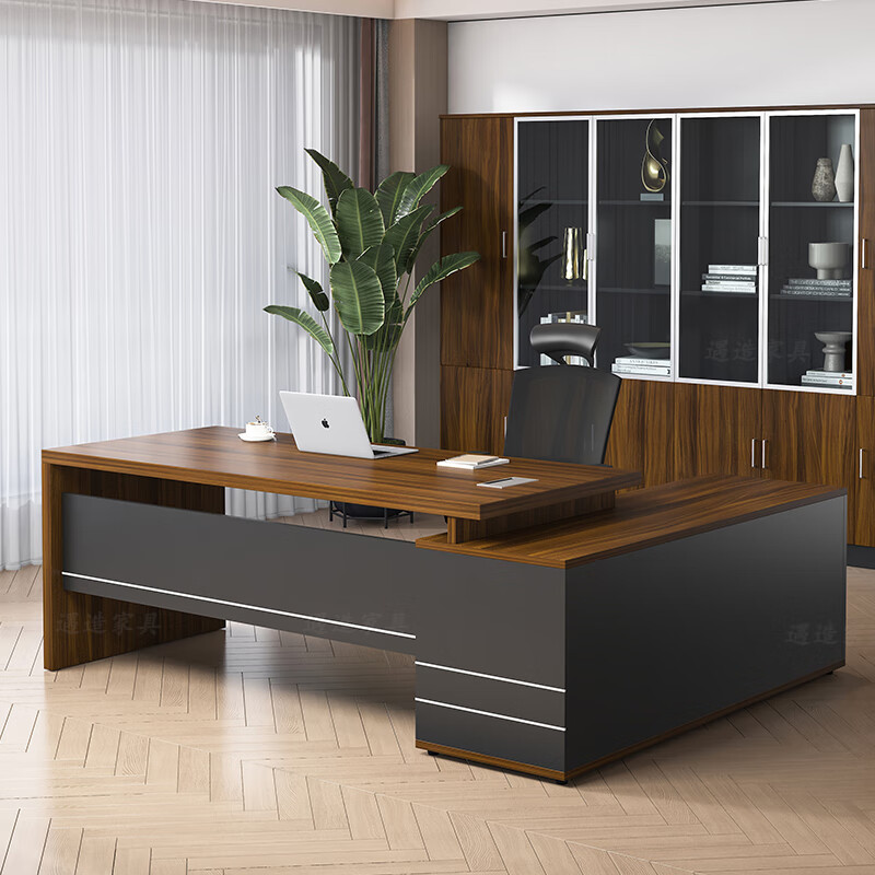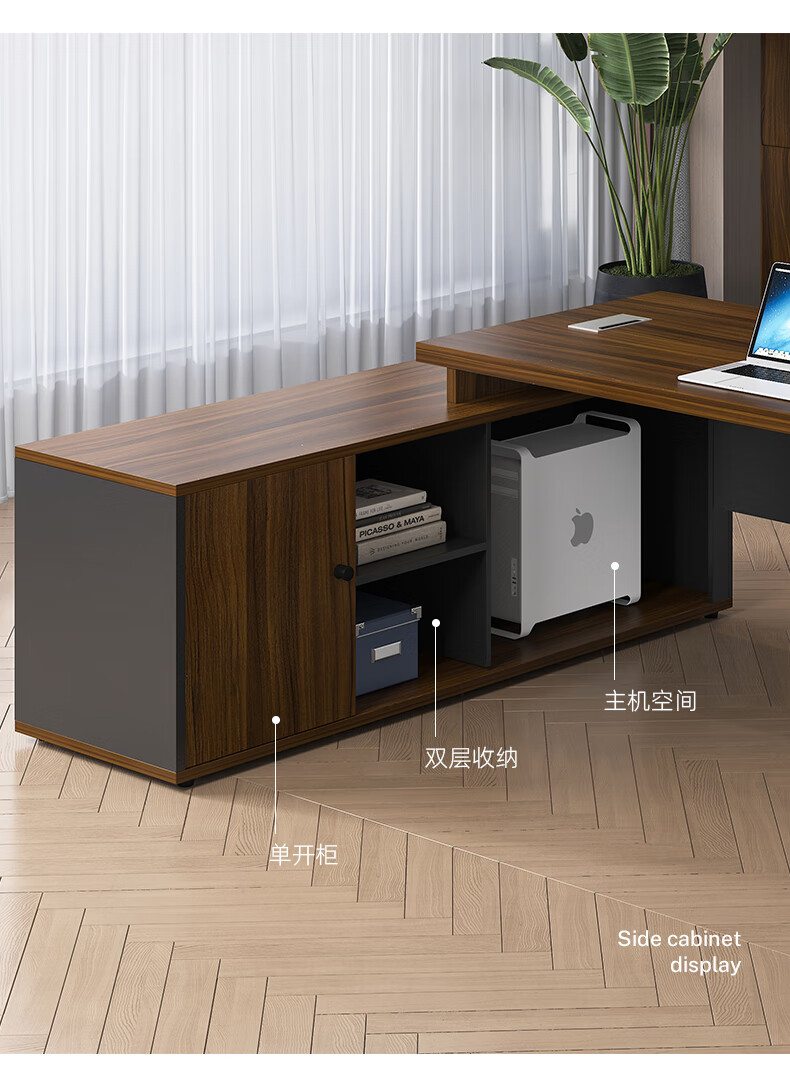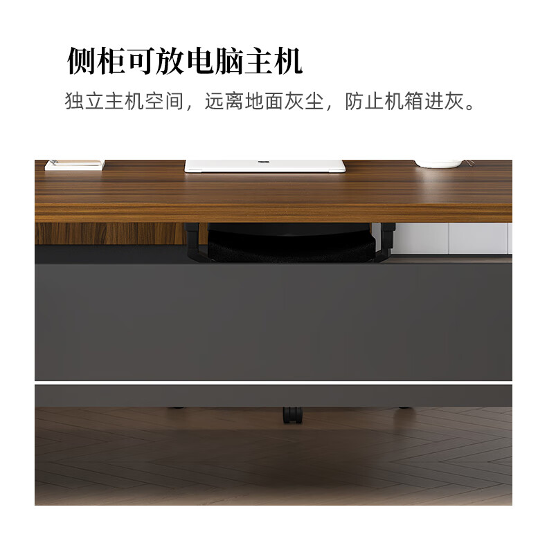 遇造辦公桌老板桌現(xiàn)代簡(jiǎn)約單人帶柜大班臺(tái)經(jīng)理主管桌1.8米桌胡桃+鐵灰