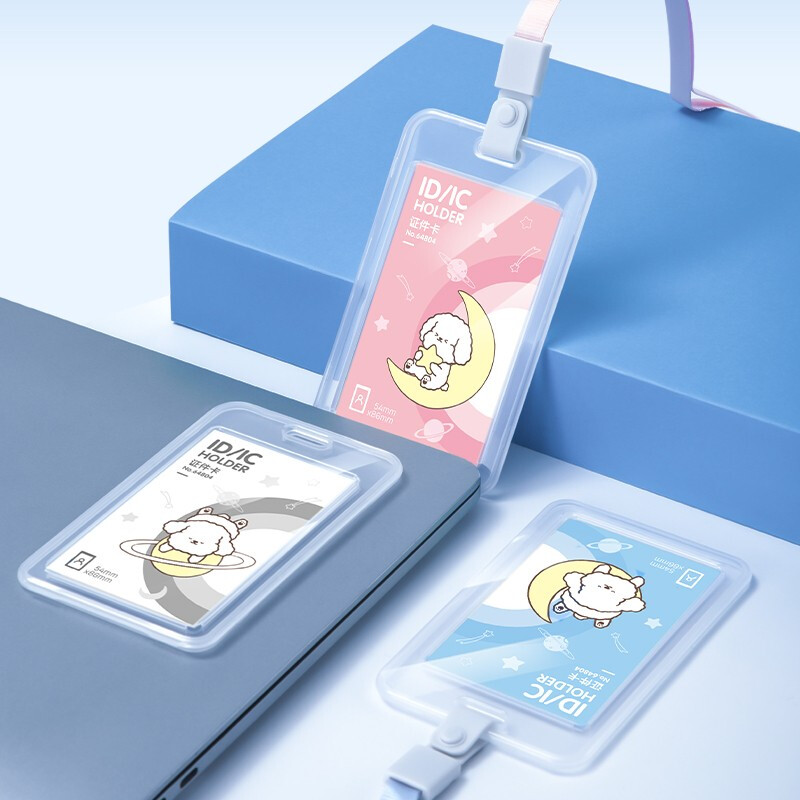 得力(deli)卡通學(xué)生證件工作牌透明卡套 工牌公交卡套飯卡門禁地鐵卡套 掛繩款 學(xué)生胸牌白色64804