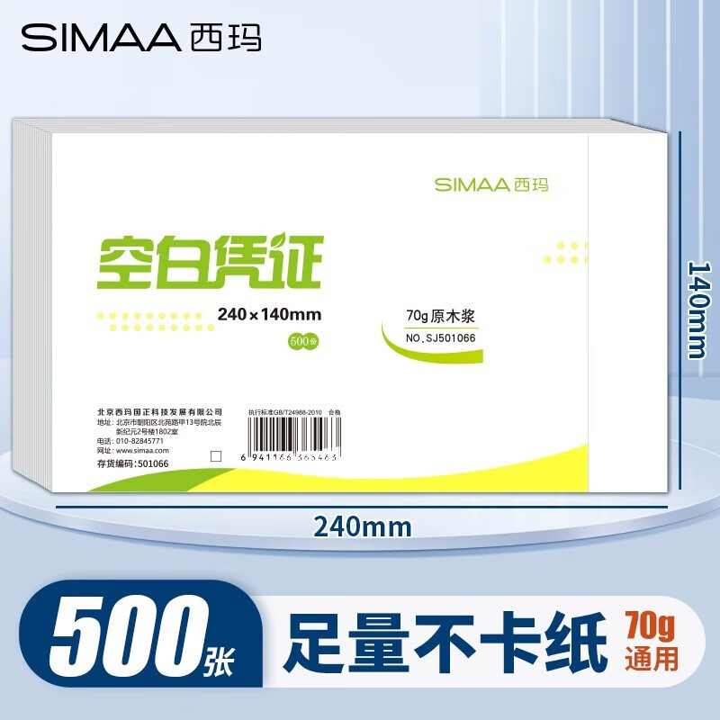 西瑪(SIMAA)240-140mm增票版憑證打印紙【暢打款】空白憑證【70g】 500張/包